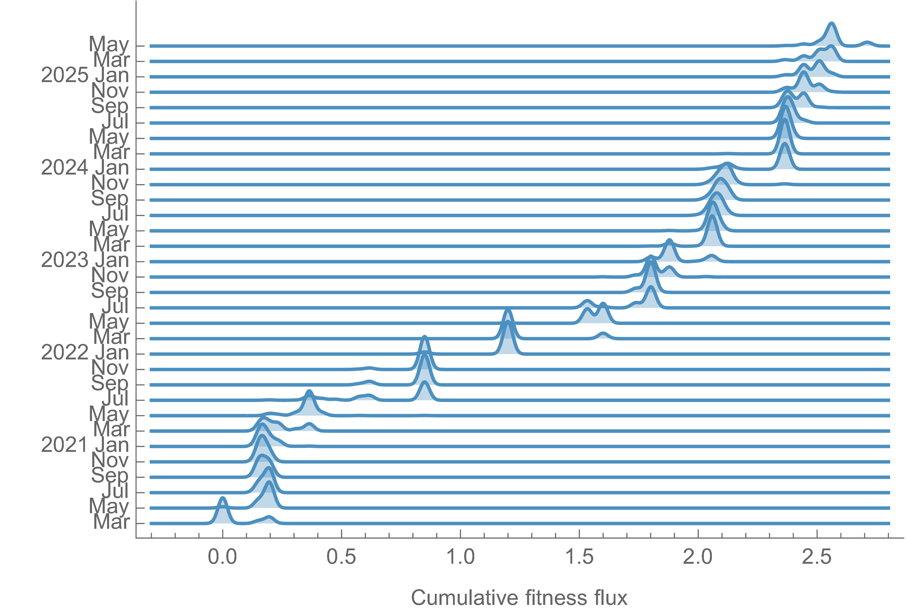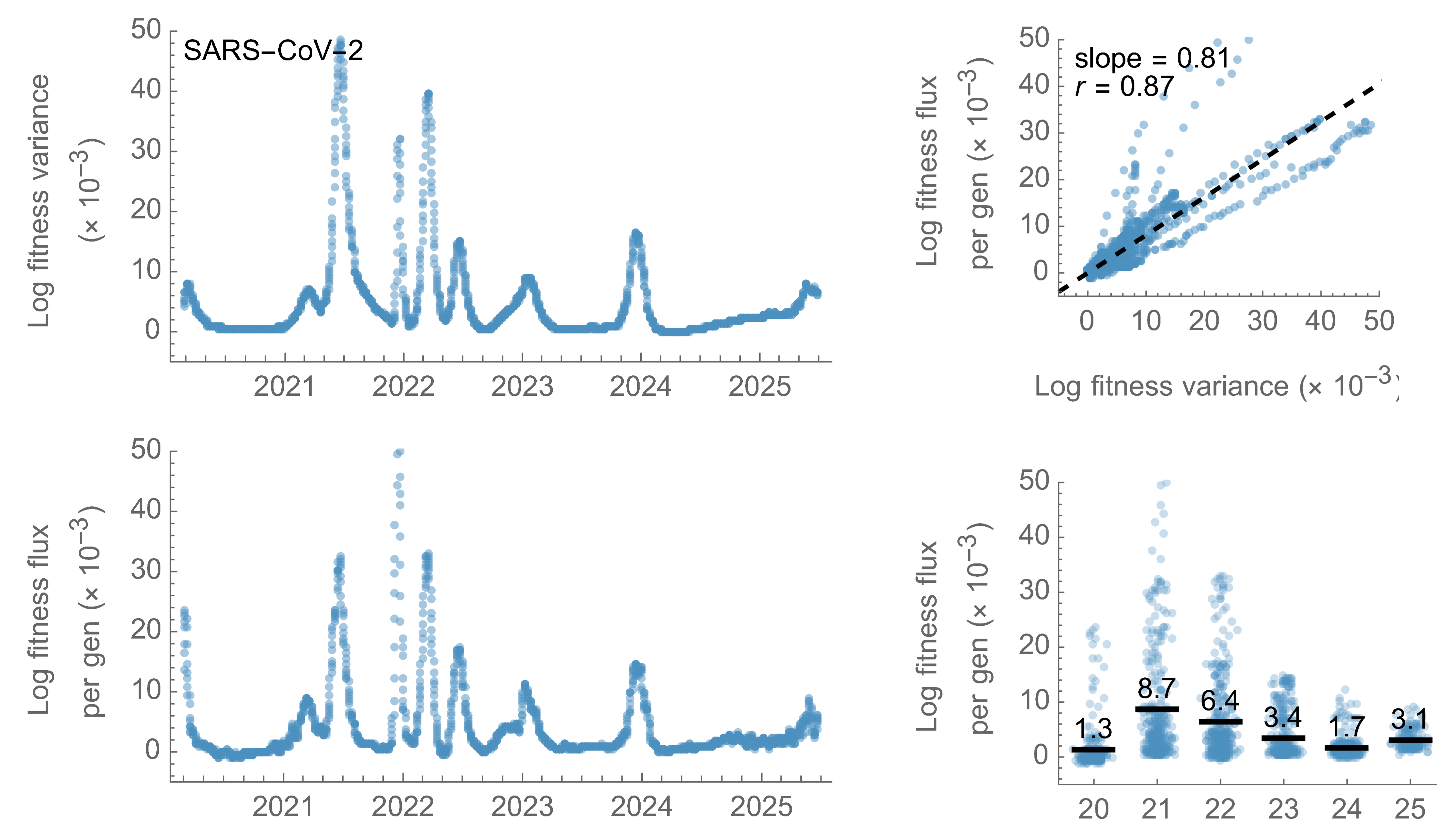 | Fitness flux | $\phi(t) = \left( \sum_i \Delta x_i \, f_i \right) / \Delta t$ |